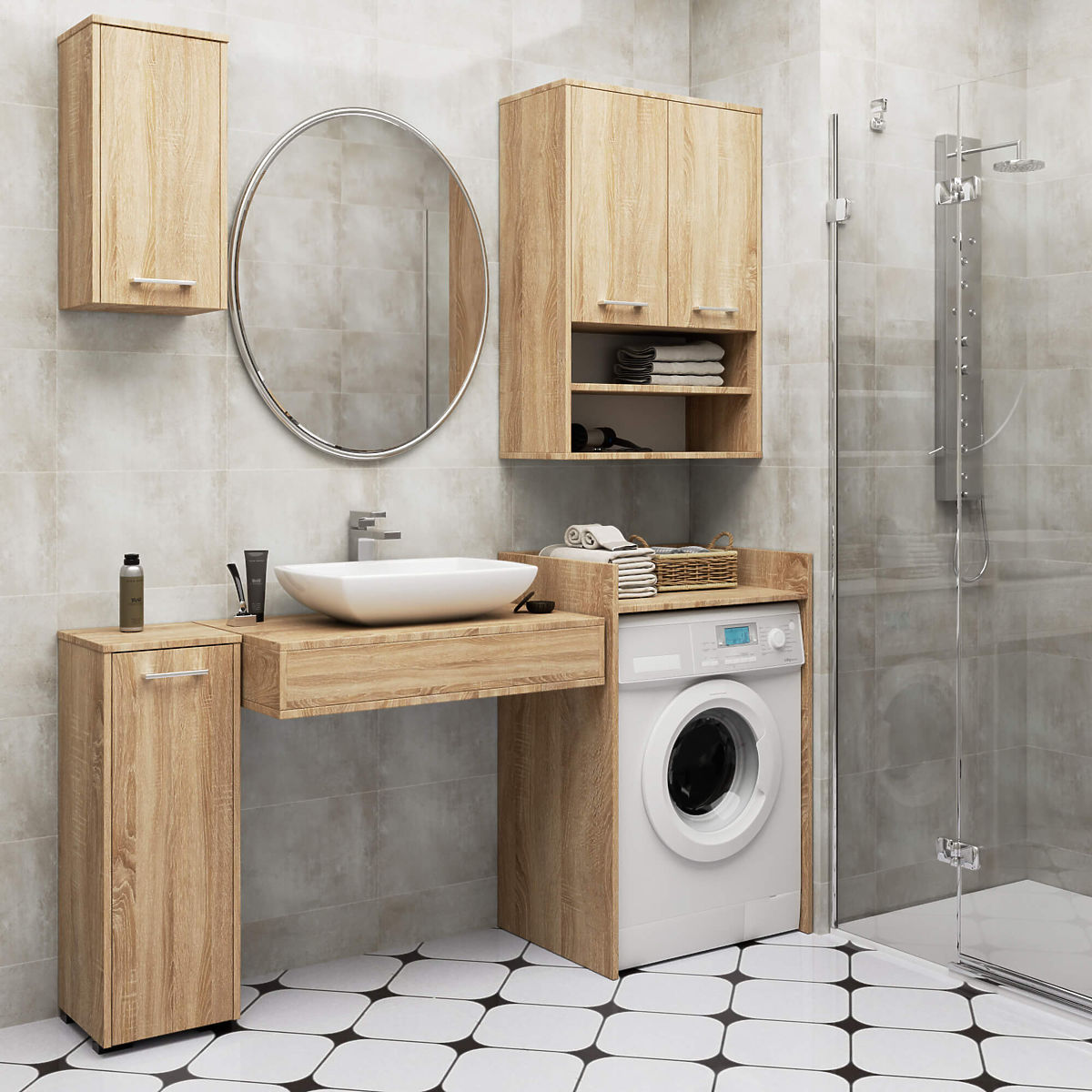 Space-saving oak sonoma cover for washing machines. .. more