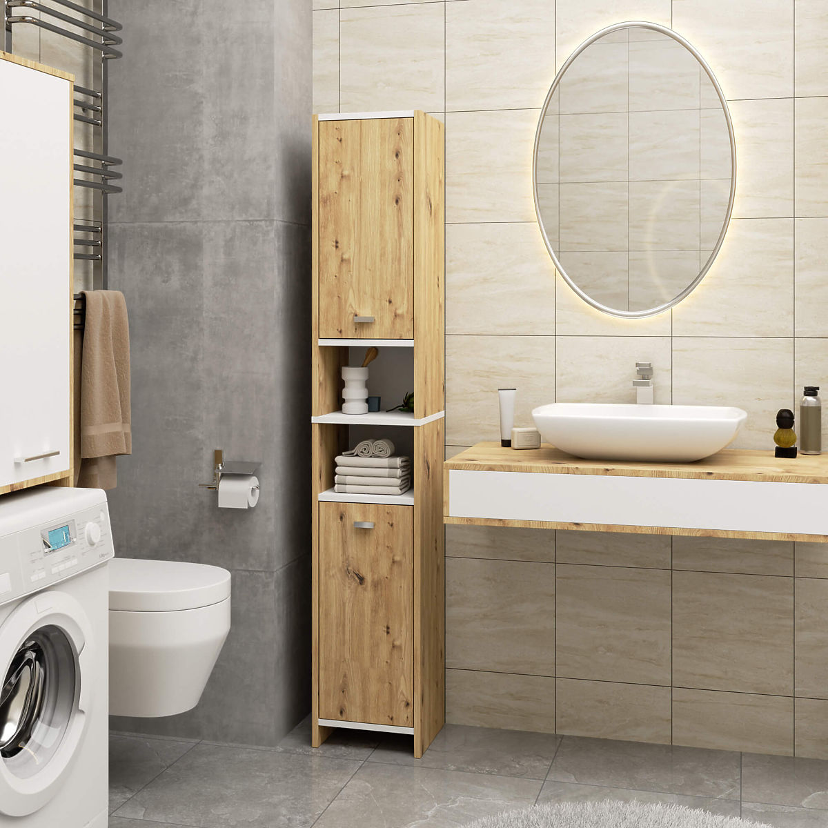 Lukafurniture.eu » Bathroom & Toilet / Bathrooms lockers / BATHROOM SHELF BETI 2D 2W ARTISAN OAK WHITE