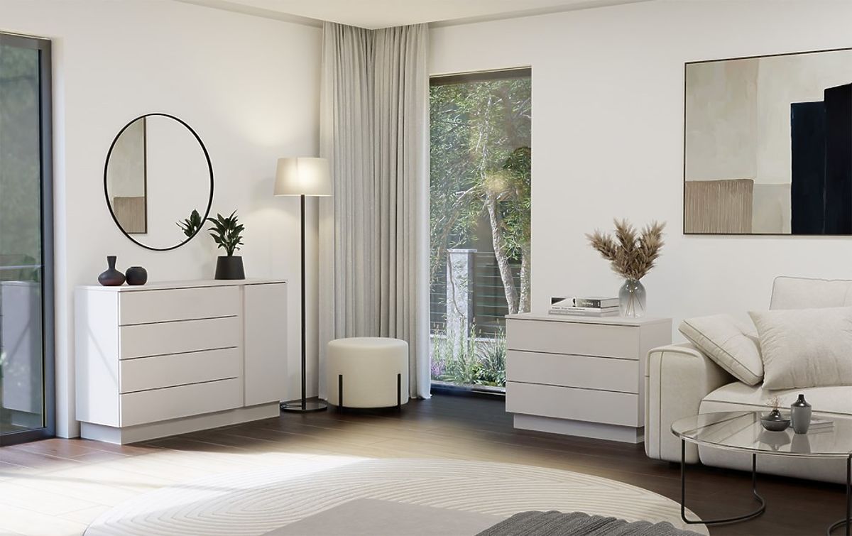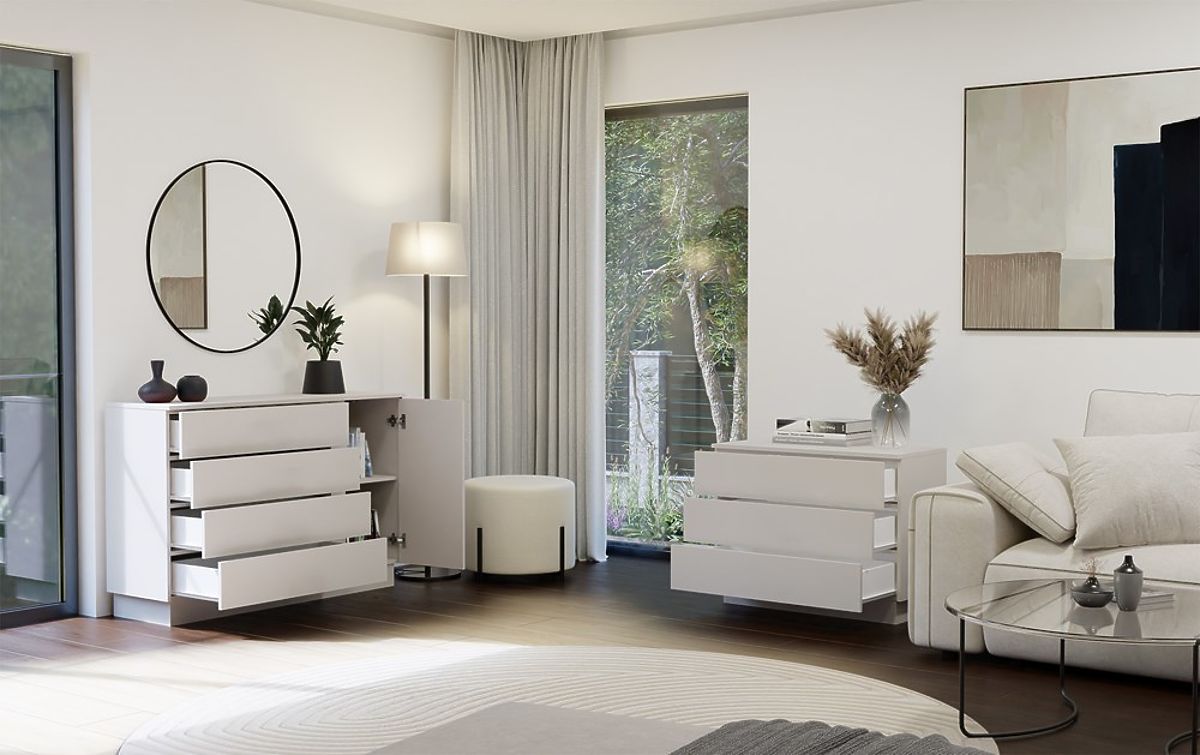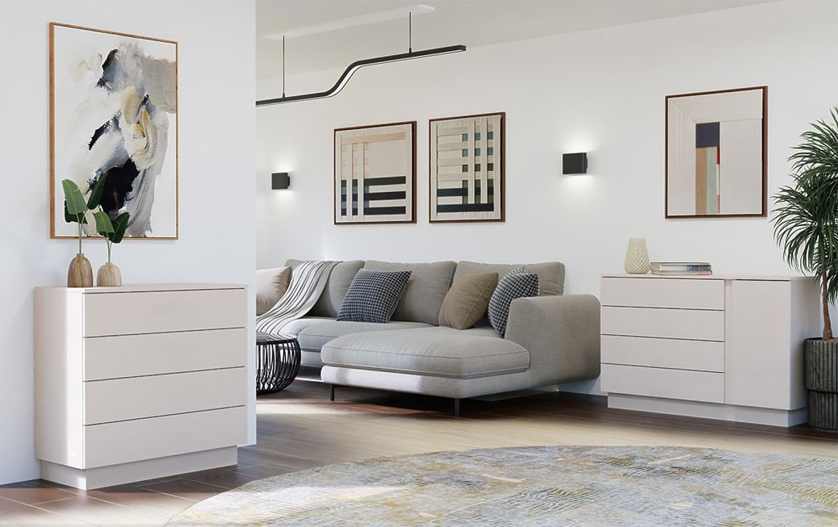Lukafurniture.eu » Furniture / Commodes / AMBER 1D4S Dresser Cabinet 1 Door 4 Drawers for Bedroom Living Room CASHMERE Beige
