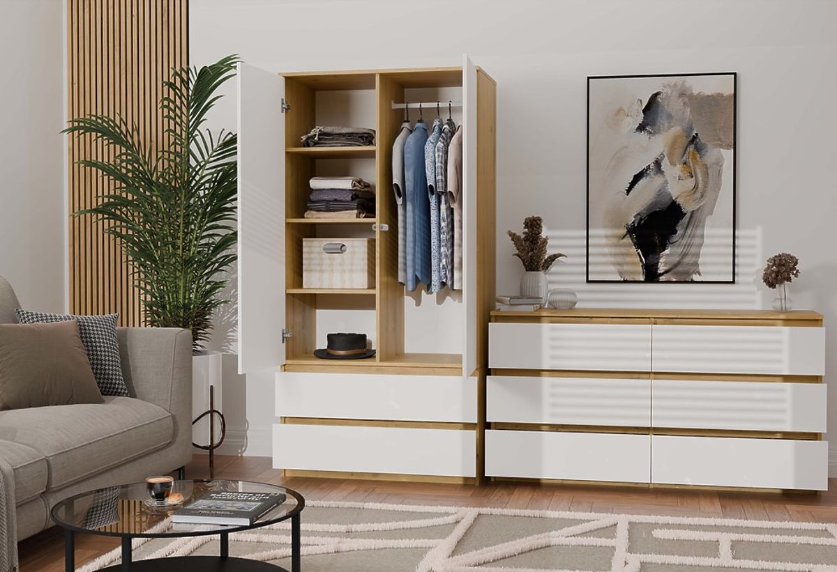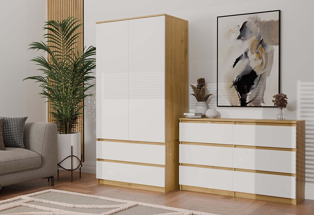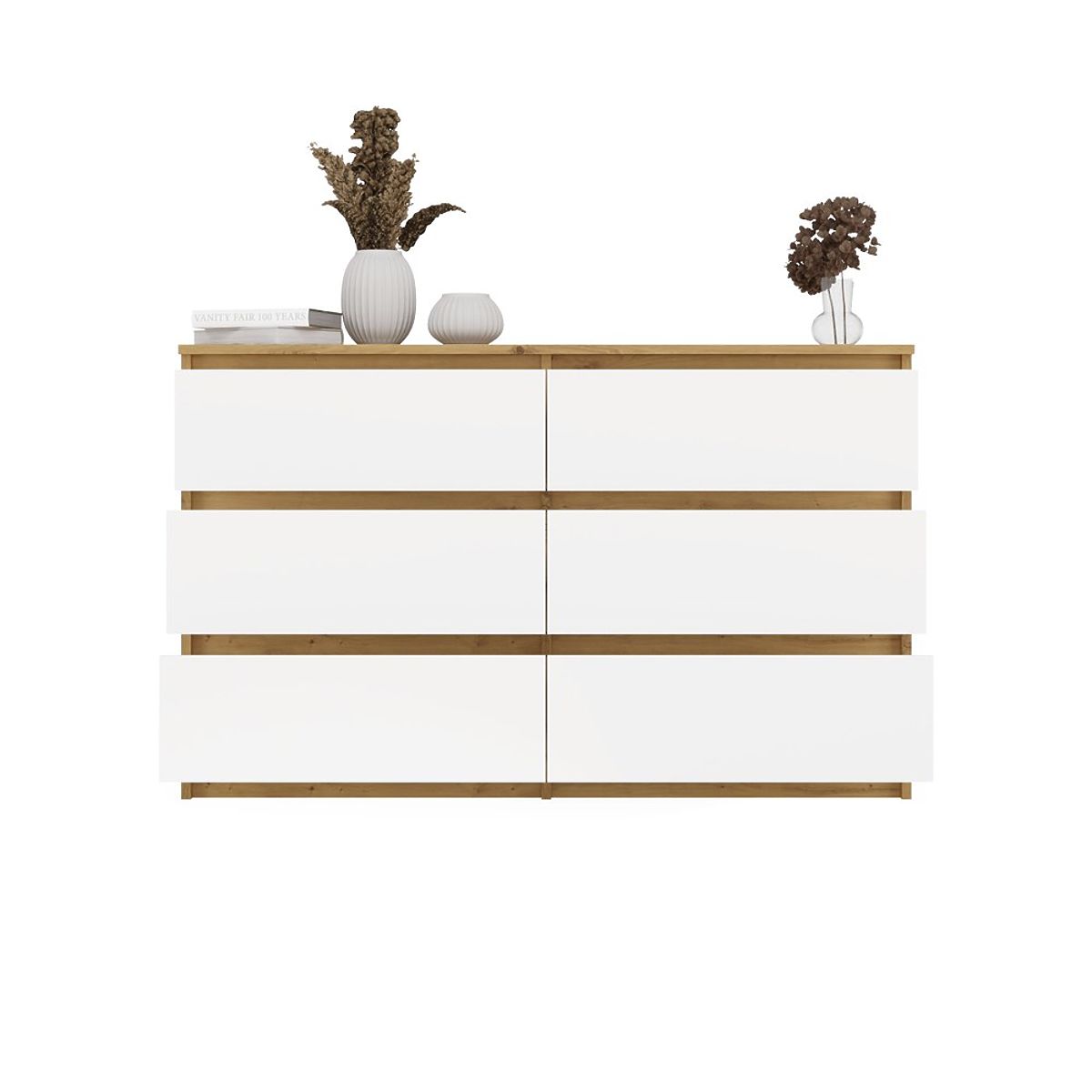 Spacious sideboard with 6 drawers in Oak Artisan and white. .. more