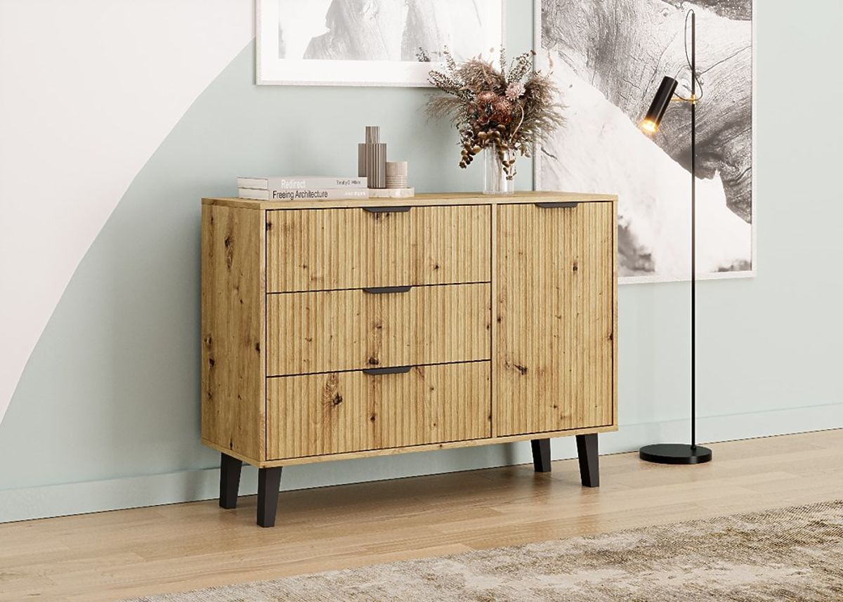 SCANDI 1D3S SLIM SIDEBOARD - 1 DOOR, 3 DRAWERS