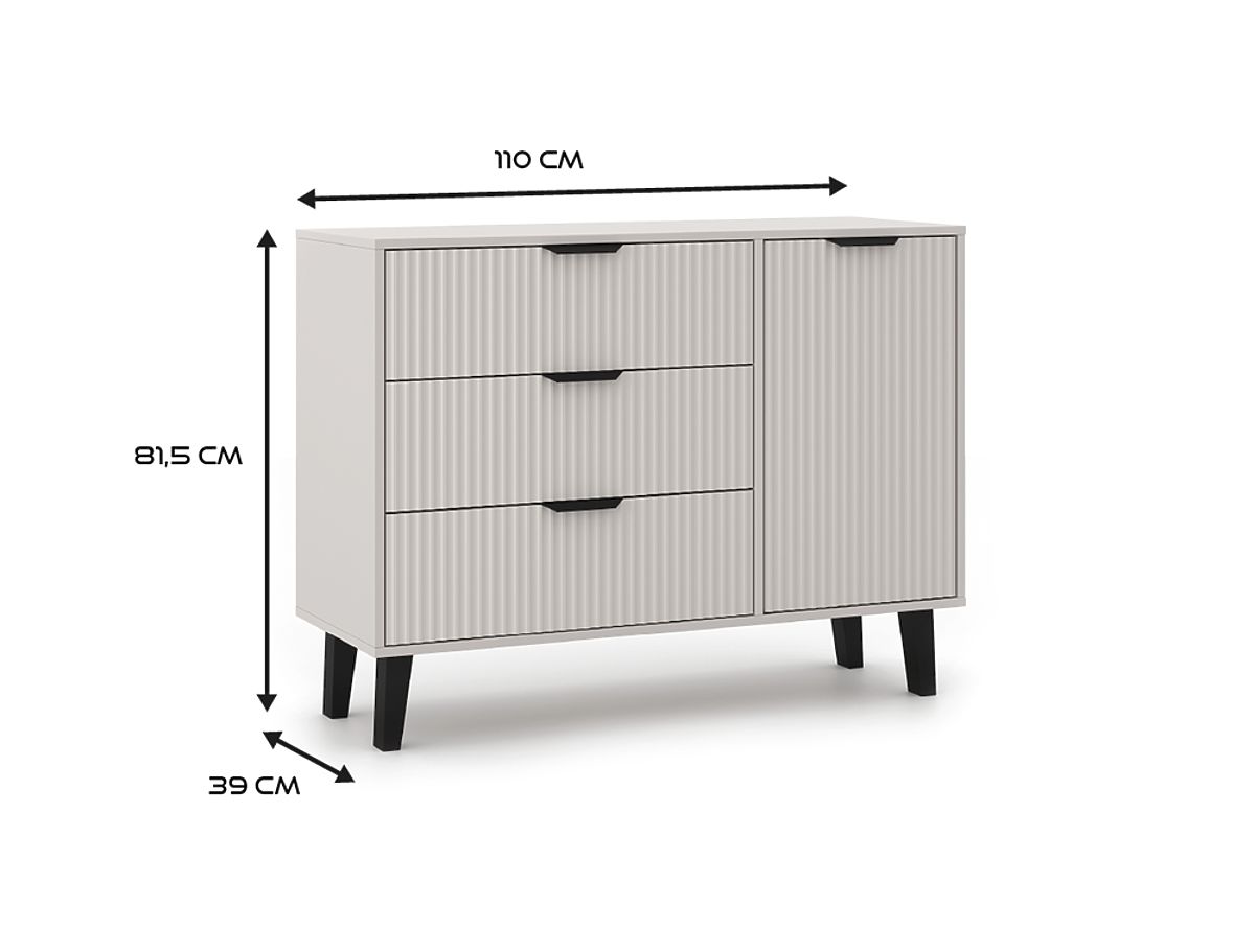 The SCANDI 1D3S SLIM chest of drawers combines fashionable design and functionality, perfect for interiors inspired by Scandinavian and modern styles. Its compact dimensions and aesthetic design make it suitable for the living room, bedroom, or hallway.