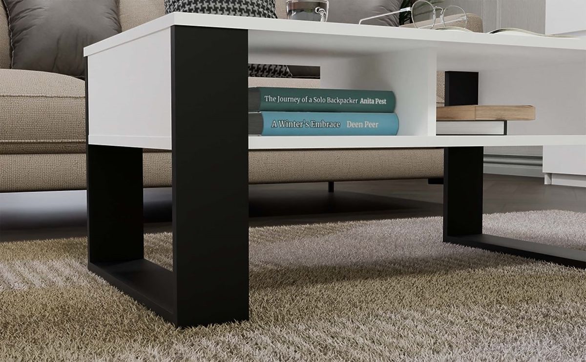 Modern coffee table with two spacious shelves, perfect for living rooms. .. more