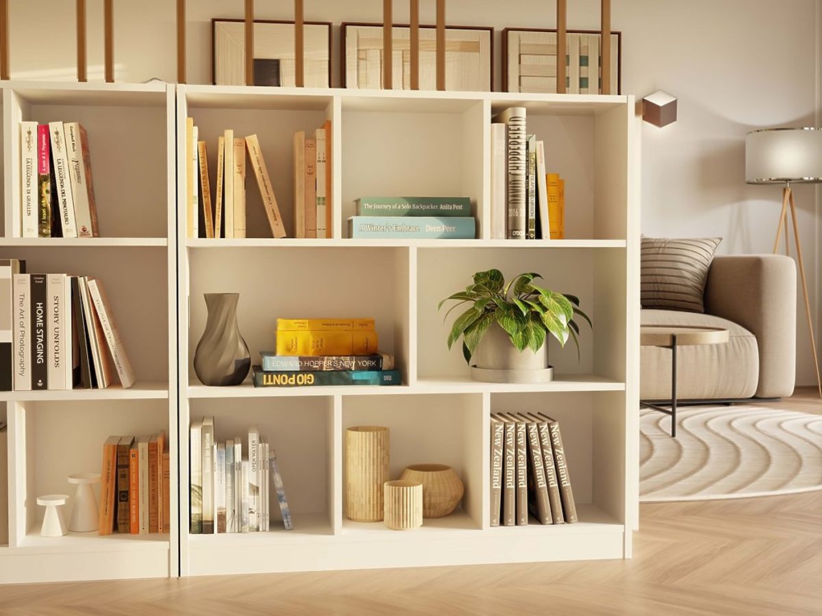 8 functional shelves/compartments – ideal for books, decorations, or storage boxes.