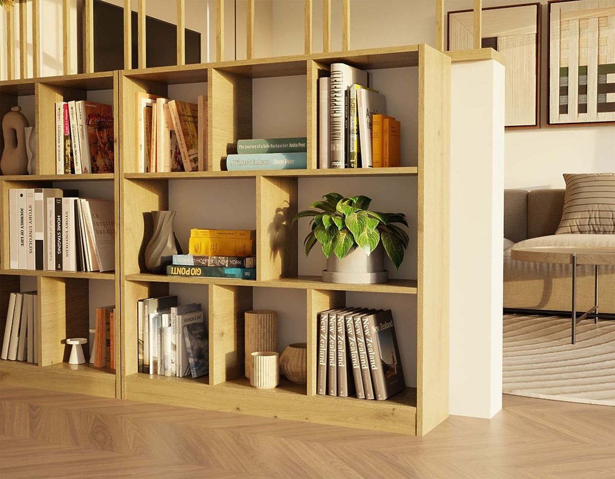 8 functional shelves/compartments – ideal for books, decorations, or storage boxes.