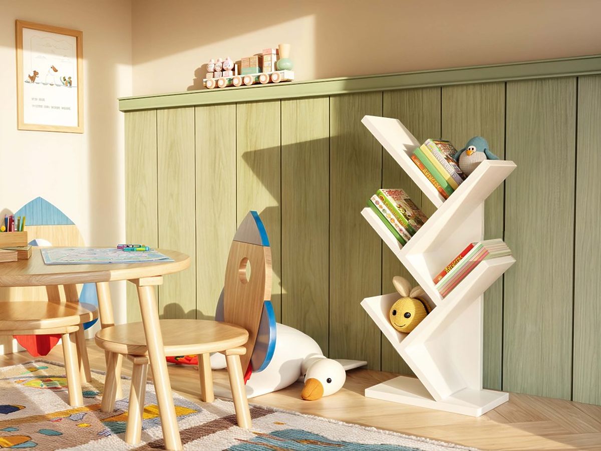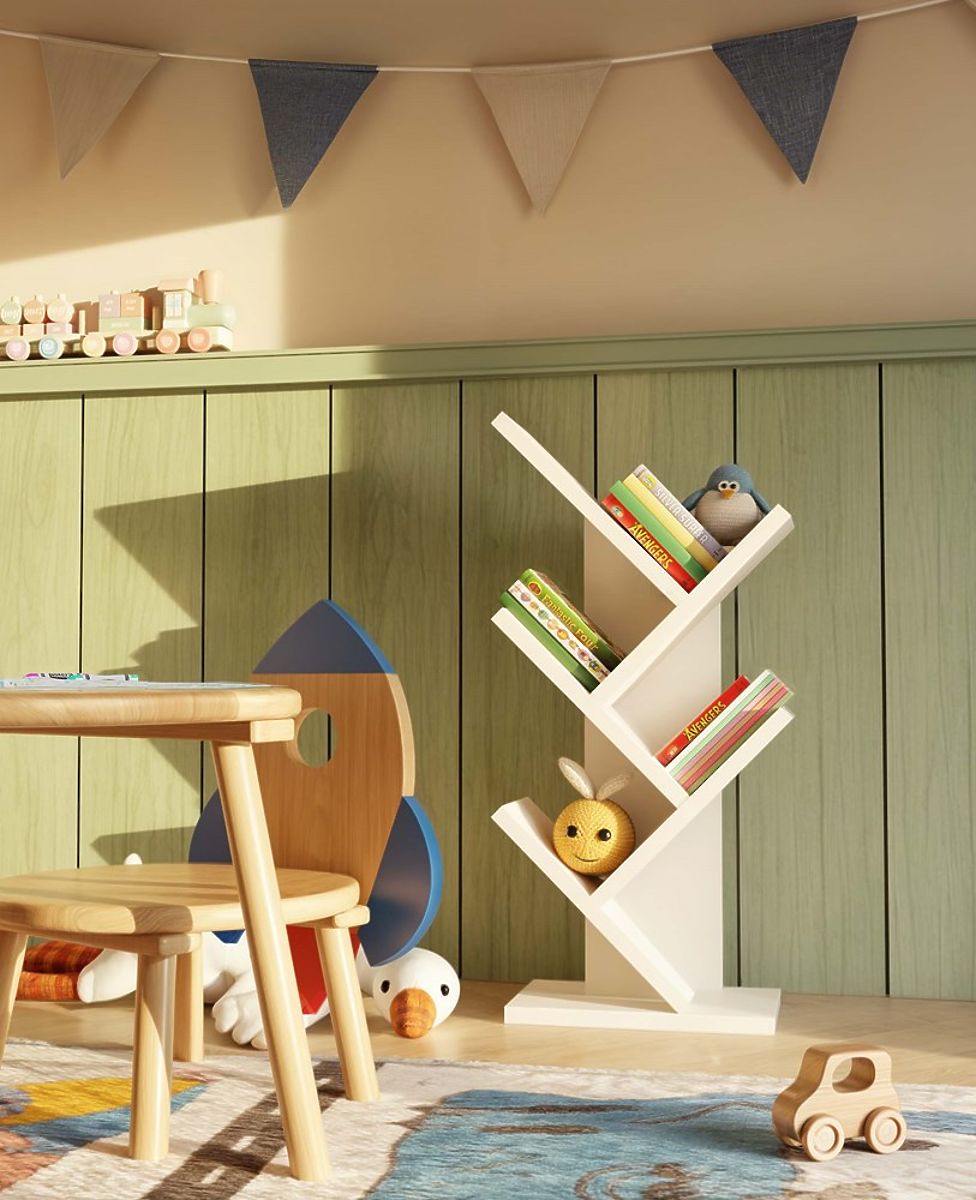 • 4 slanted open shelves – ideal for books, files, decorations, or toys
