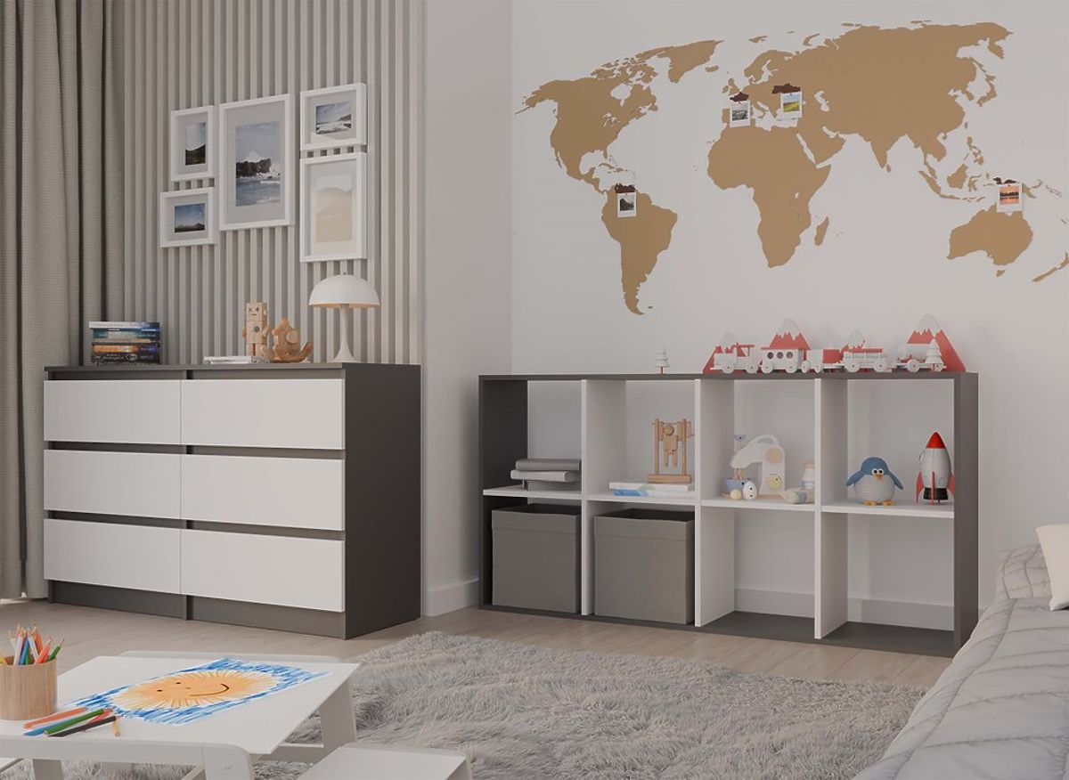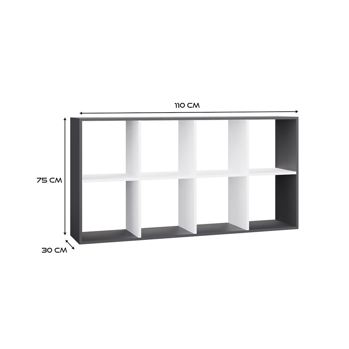 Anthracite and white shelf with 8 versatile open shelves. .. more