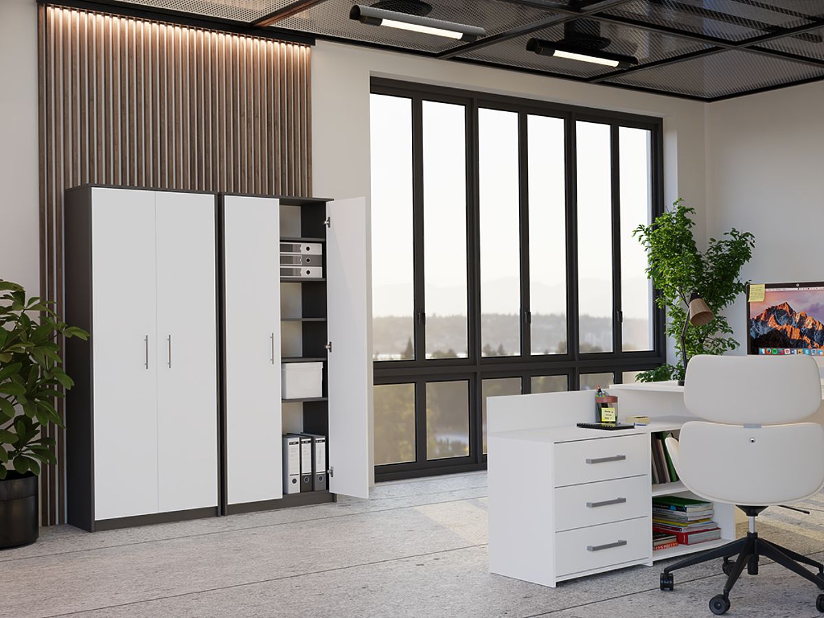 Modern office shelf with 8 shelves and 2 doors. .. more