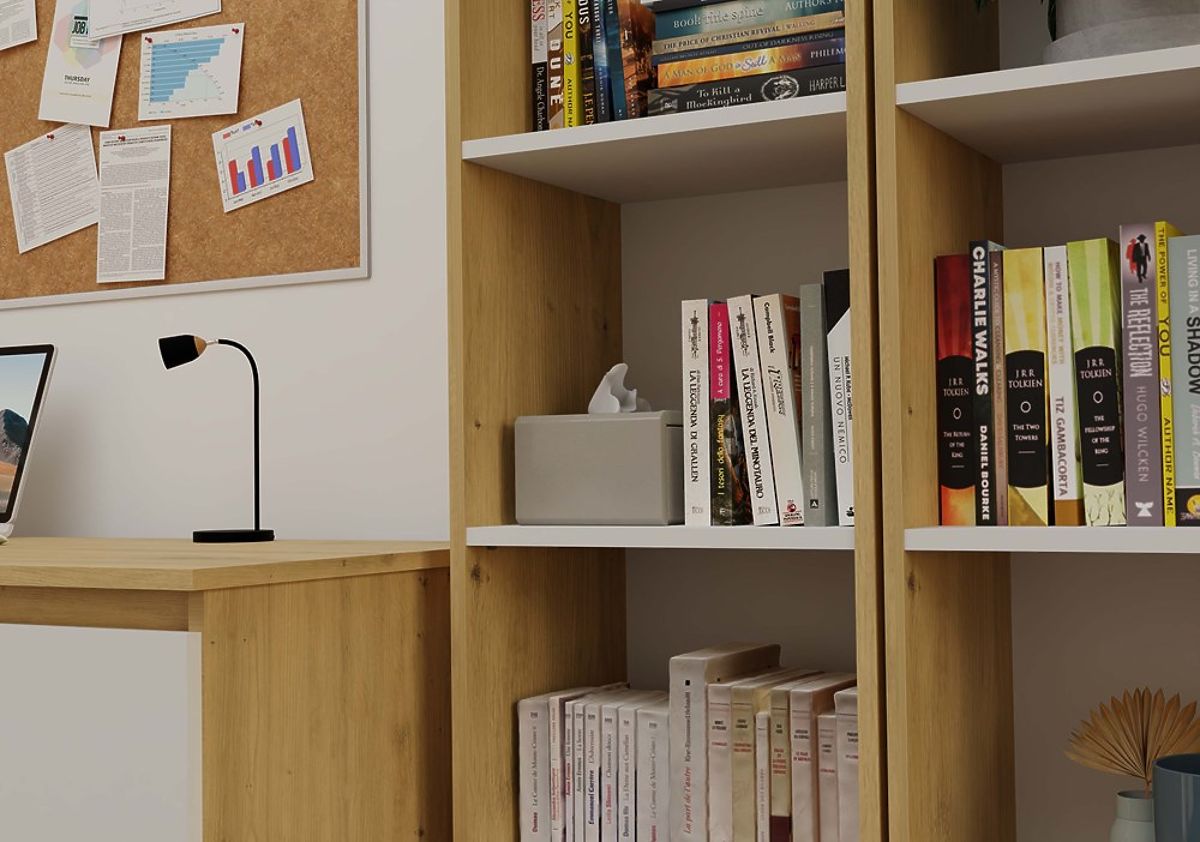 Stylish oak artisan and white shelf for books and decorations. .. more