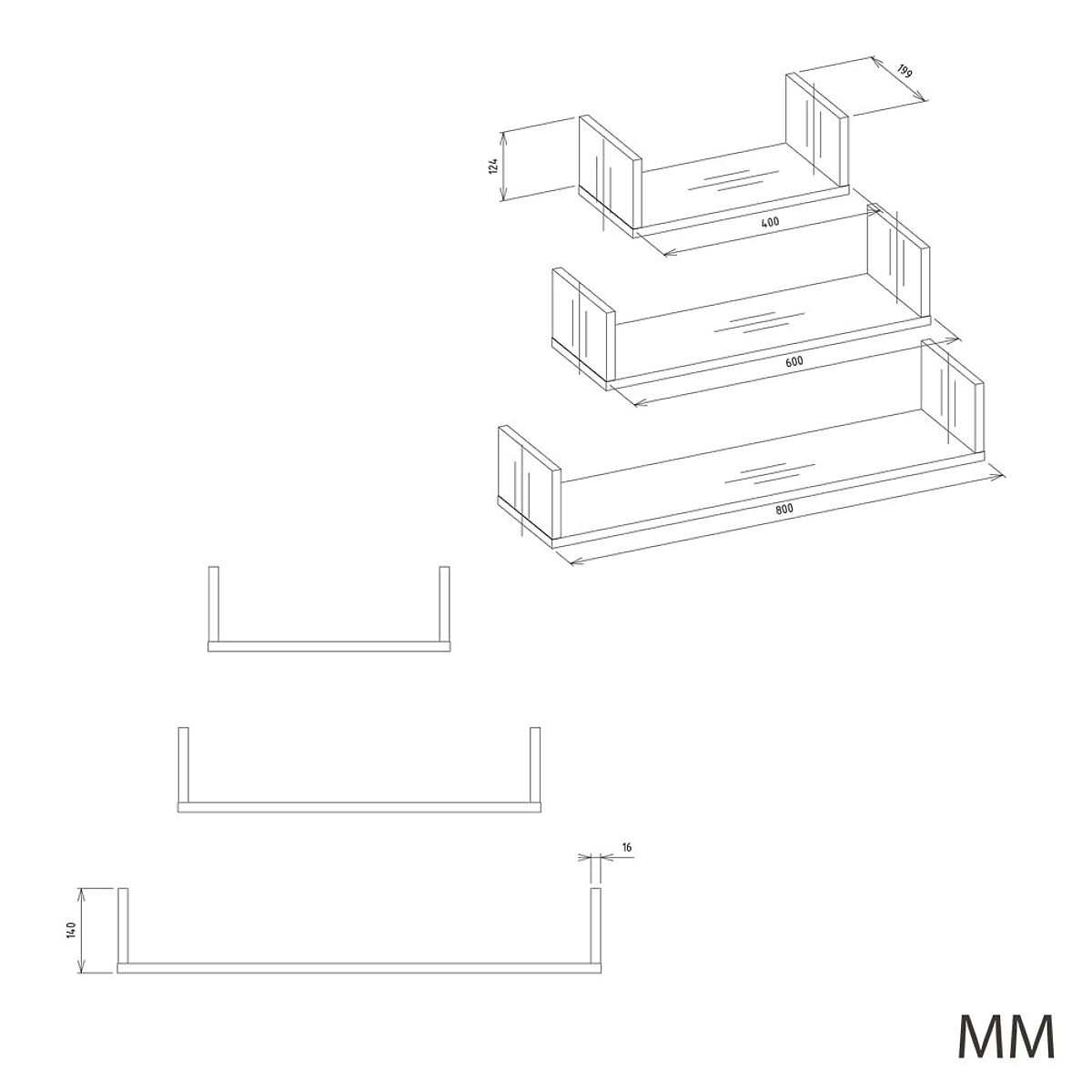Set of 3 wall shelves in Sonoma Oak finish. .. more