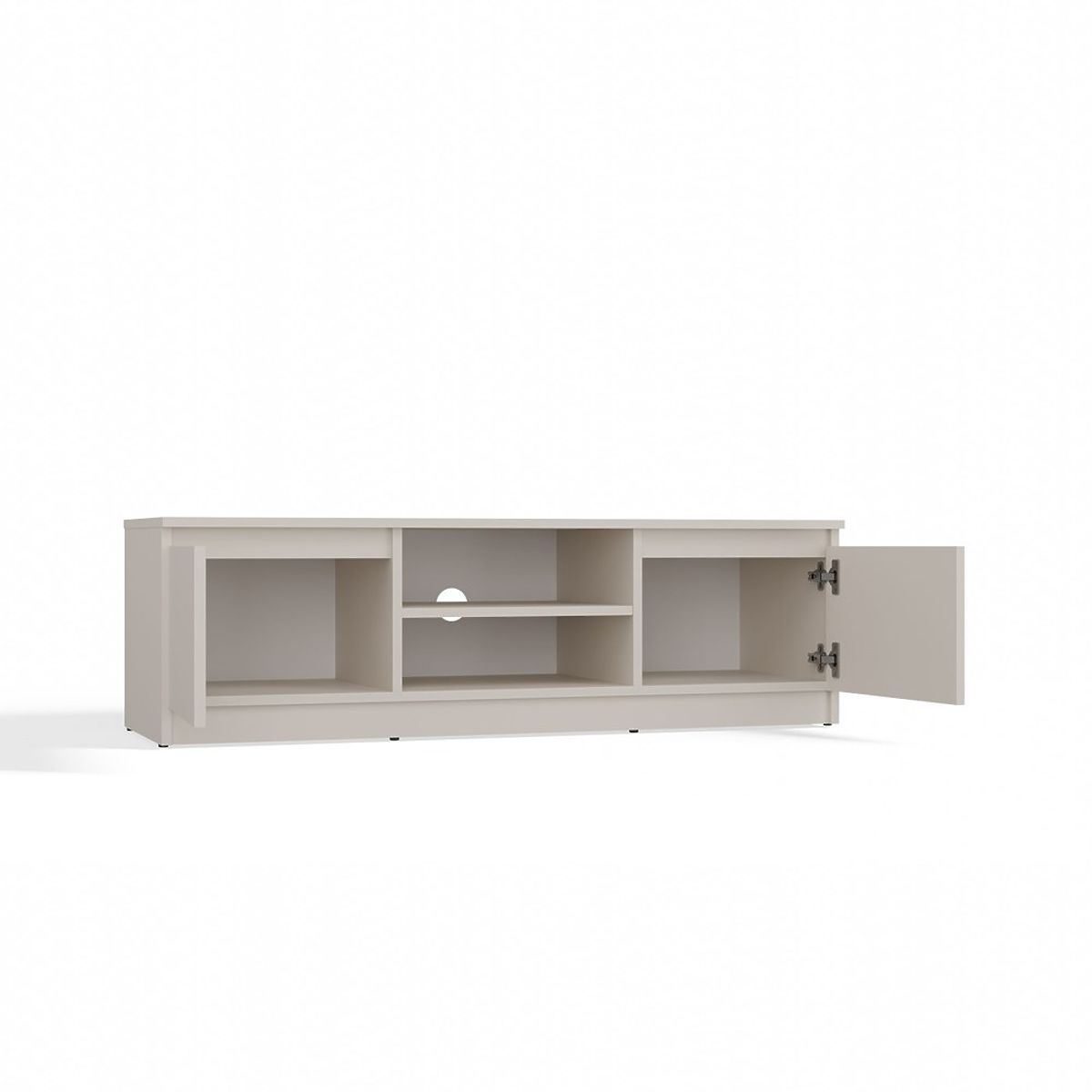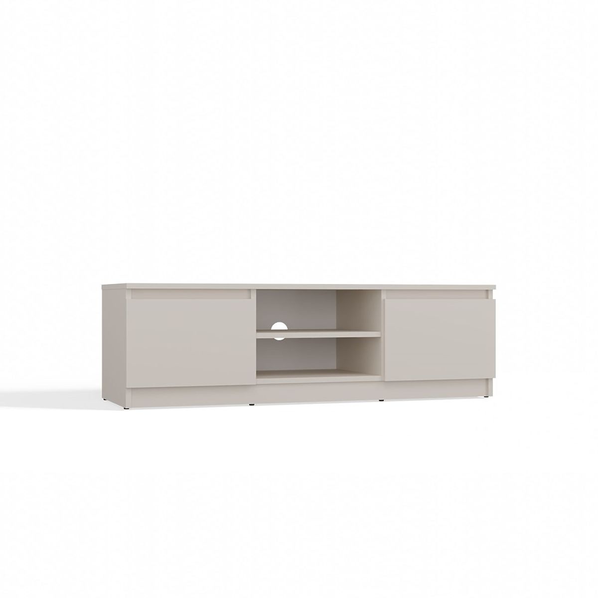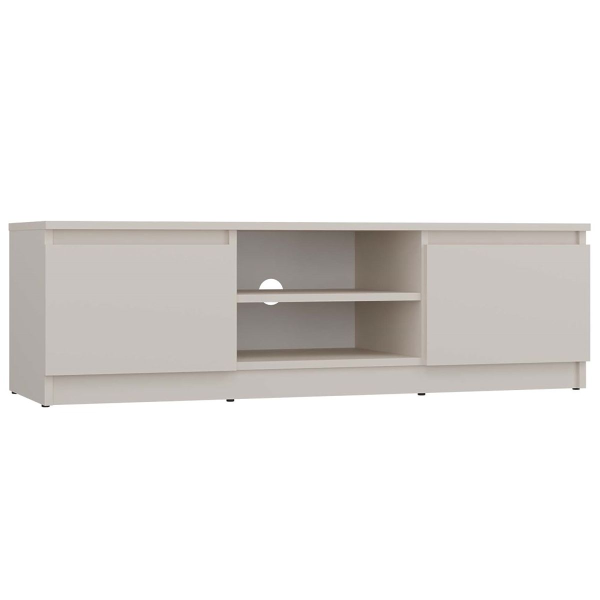 Open shelf allows convenient placement of TV equipment, and an opening at the back facilitates discreet cable management.