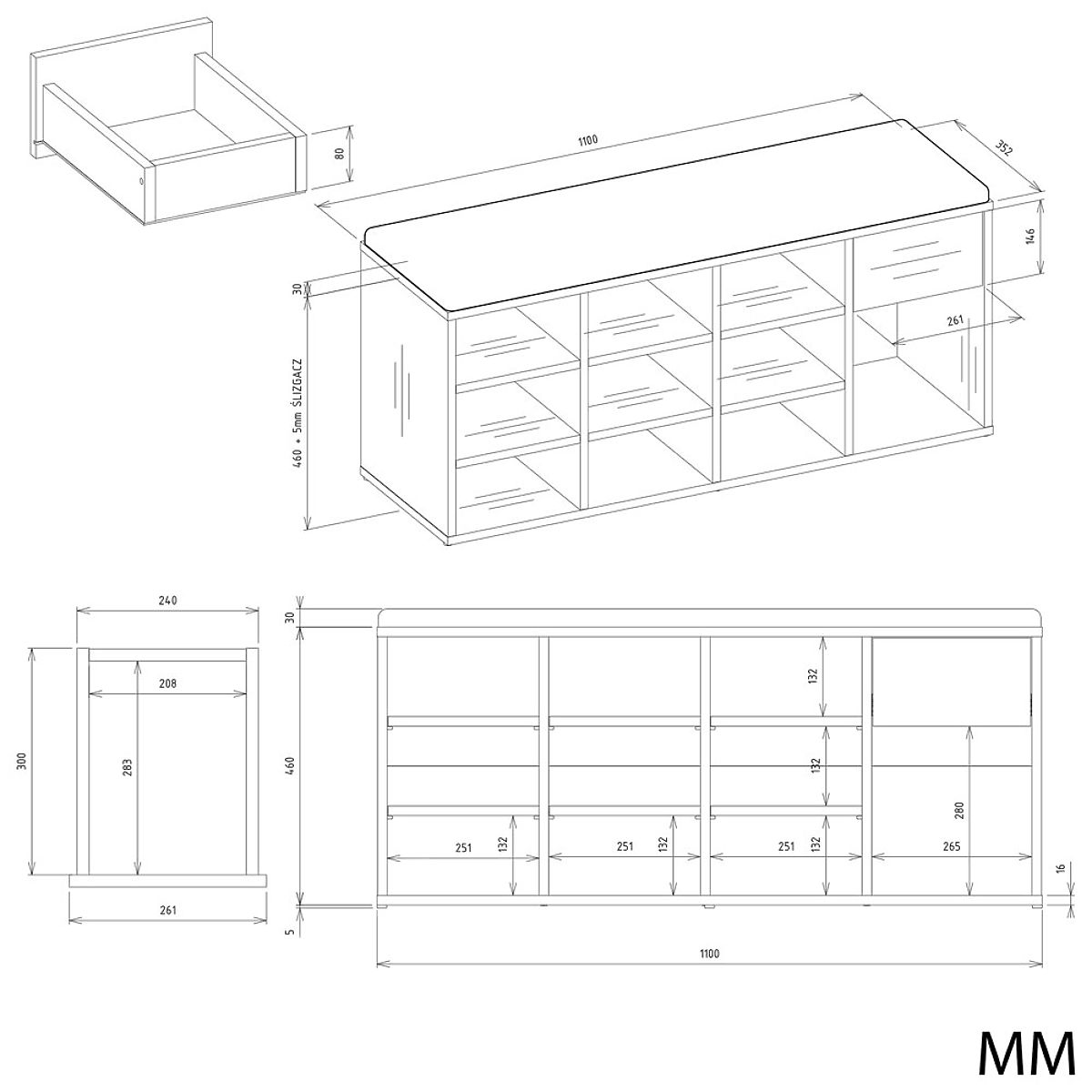 Shoe cabinet with seating and storage in anthracite and oak artisan. .. more