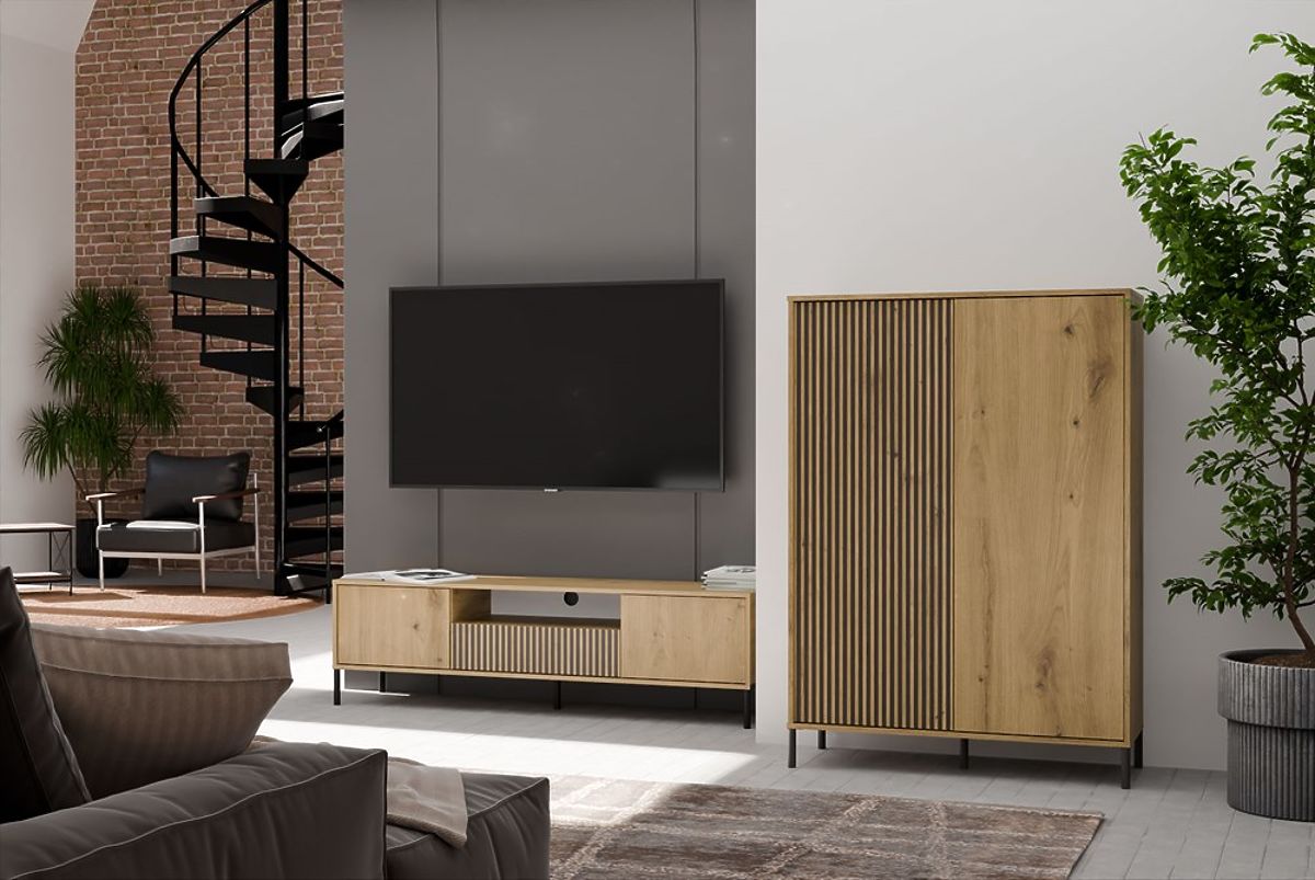 Lukafurniture.eu » Furniture / TV tables a commodes / TV Cabinet KAMARO 160 Artisan Oak Grooved + Classic Front Panel