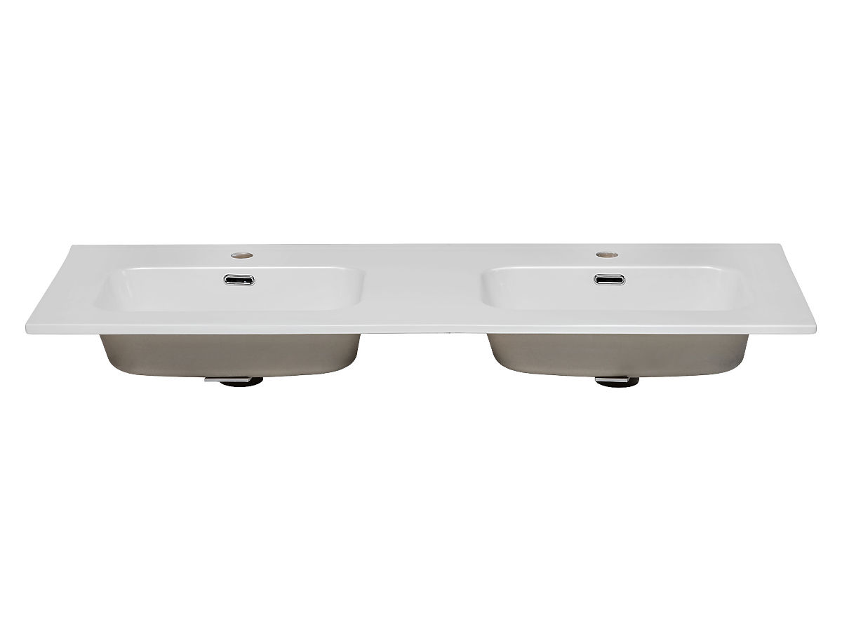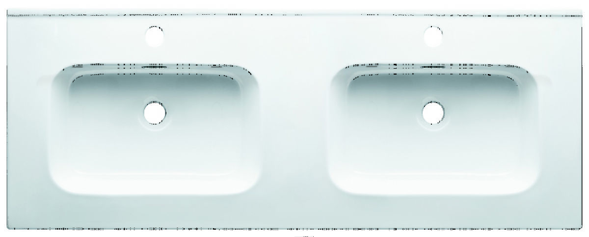 Rectangular double-chamber ceramic washbasin with high gloss finish. .. more