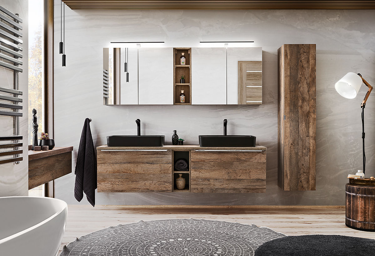 Tall cabinet with 1 door and 2 drawers, Santa Fe Vintage Oak finish. .. more