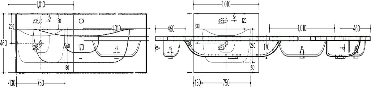 Rectangular ceramic sink with high gloss finish and irregular basin shape. .. more
