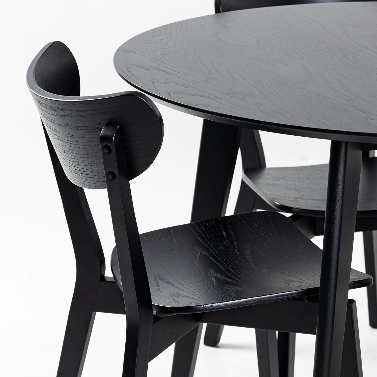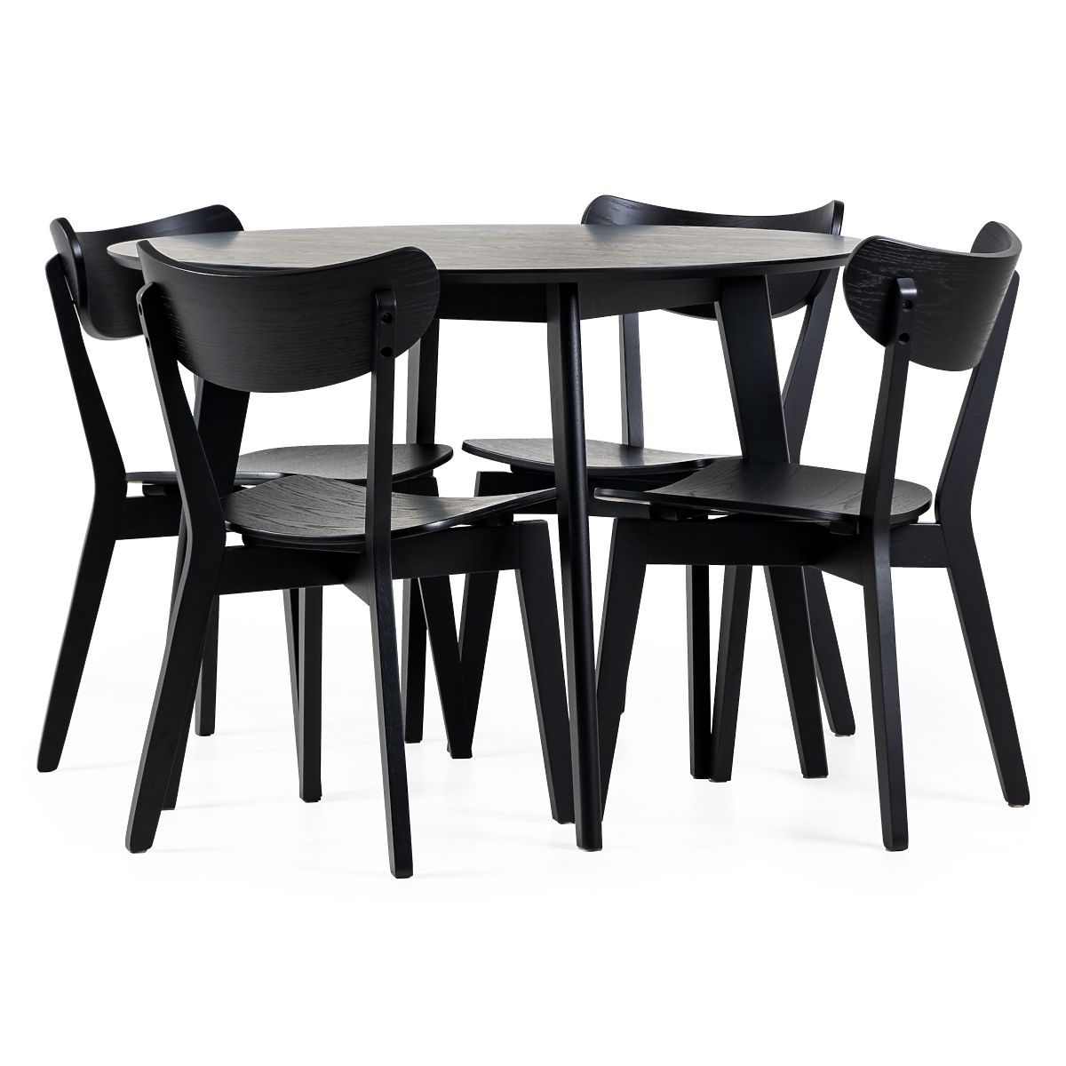Roxby dining set with a round table and four black chairs. .. more