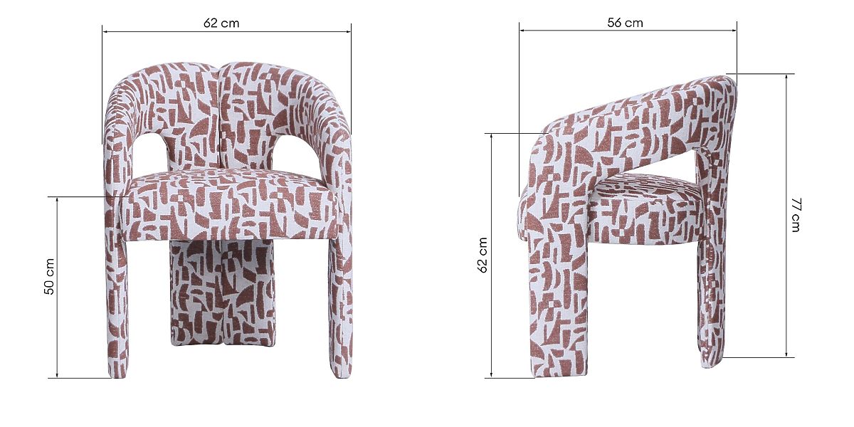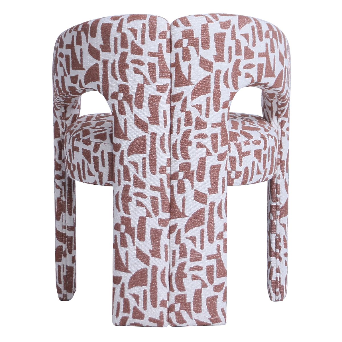 Upholstered chair with burgundy-brown fabric and unique arched shapes. .. more
